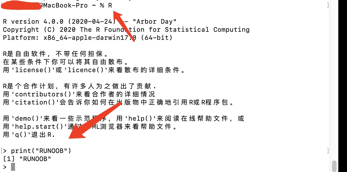 执行完这个命令后会调出 R 语言的解释器,我们在 > 符后面输入代码即可。