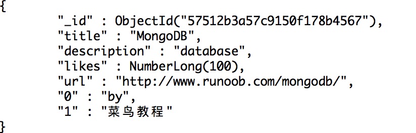 然后我们在 mongo 客户端使用 db.runoob.find().pretty(); 命令查看数据:
